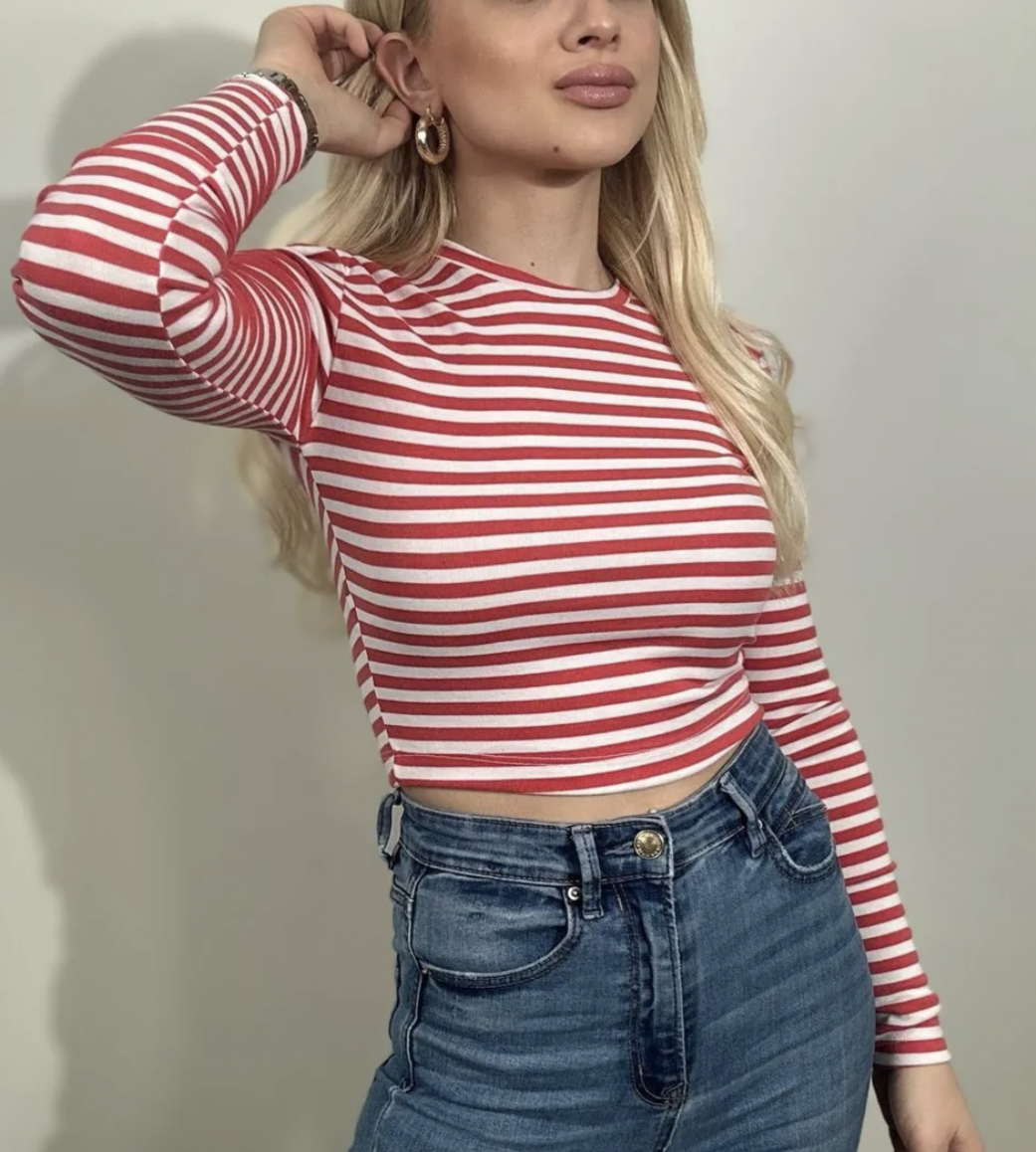 ESNEK KUMAŞ UZUN KOLLU ÇİZGİLİ CROP BODY