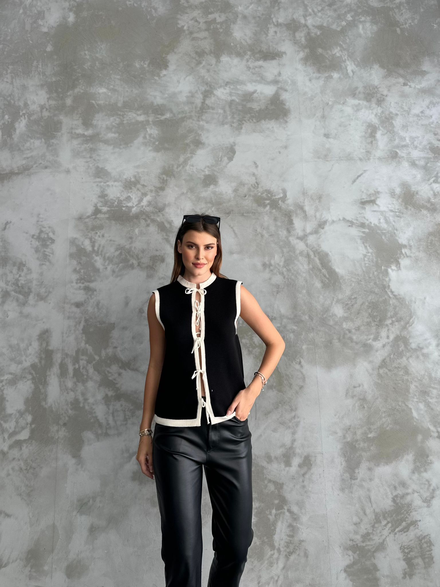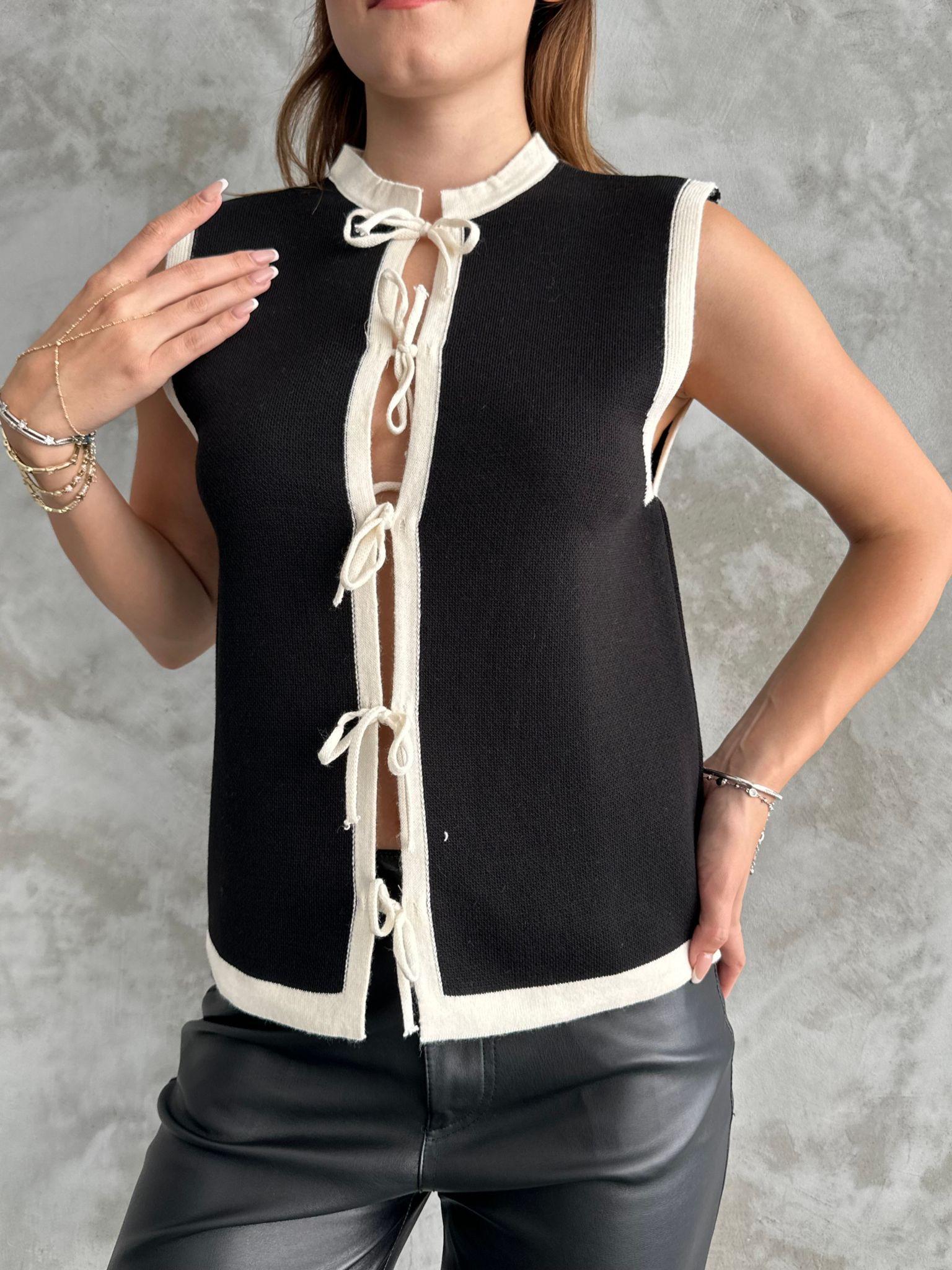 Kadın Bağcıklı Yelek Siyah, şık ve modern bir tasarıma sahip olan, kadınların günlük stilinde şıklık ve rahatlığı bir arada sunan bir üründür. Siyah renkteki bağcıkları ile dikkat çeken bu yelek, kendine özgü tarzıyla fark yaratmanıza yardımcı olacaktır.