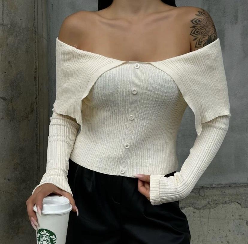 Kadın Krem Omuzları Açık Düğmeli Kazak, her mevsimde tercih edebileceğiniz bir parçadır. Mom jeans ile yaz aylarında, siyah bir pantolonla ise kış mevsiminde rahatlıkla kullanabilirsiniz. Sizi her zaman şık ve tarz sahibi gösterecek olan bu kazak, gardırobunuzun vazgeçilmez bir parçası olacak.